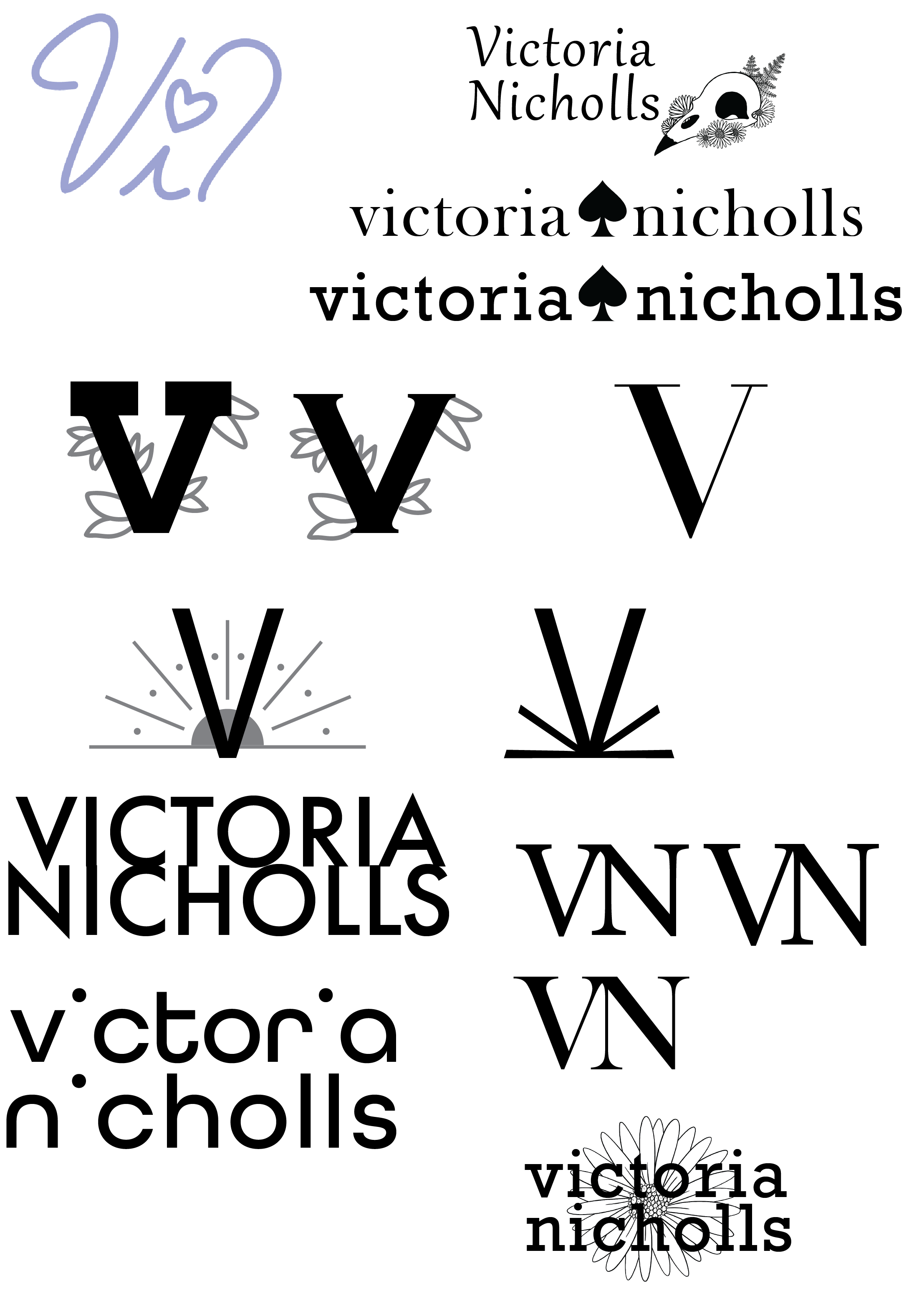I was proud of this logo I created and the brand identity I built. However, while I enjoyed using it for a while, it is important to always be moving forward and redesigning with fresh ideas. I was given another branding project which pushed me to come up with something new. I took inspiration from one of the other logo designs I created here, the one with the small leaves/petals emerging from the letter V, in order to create the identity that now embellishes this website.